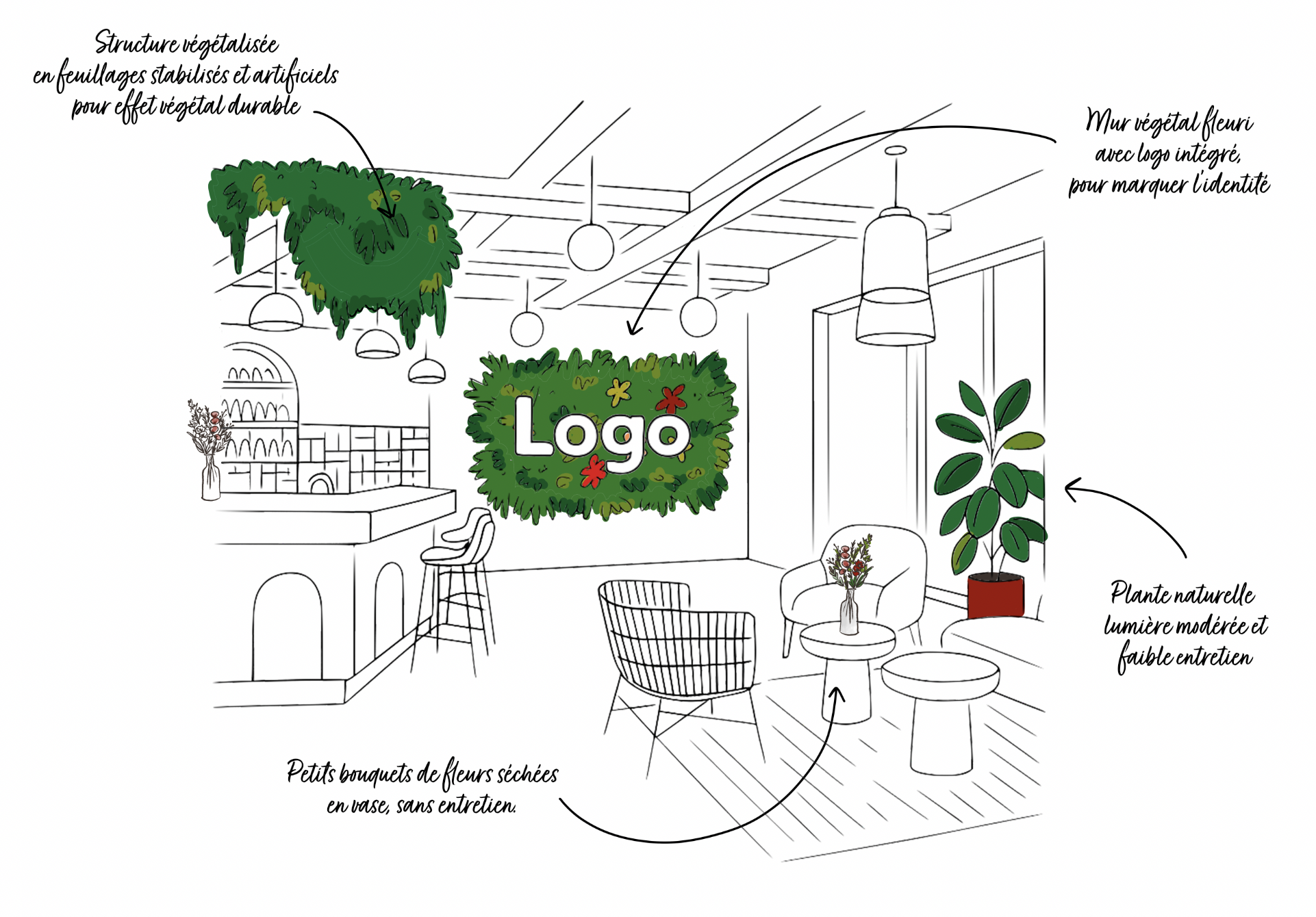 Nous concevons des décors végétaux sur mesure — naturels, stabilisés ou artificiels — pour donner vie à vos espaces.