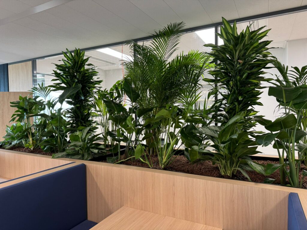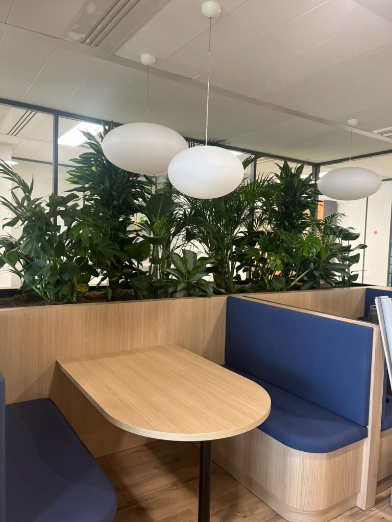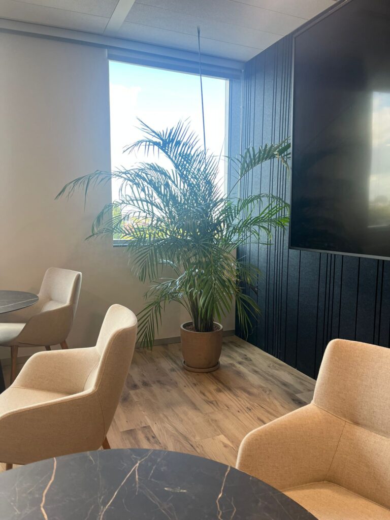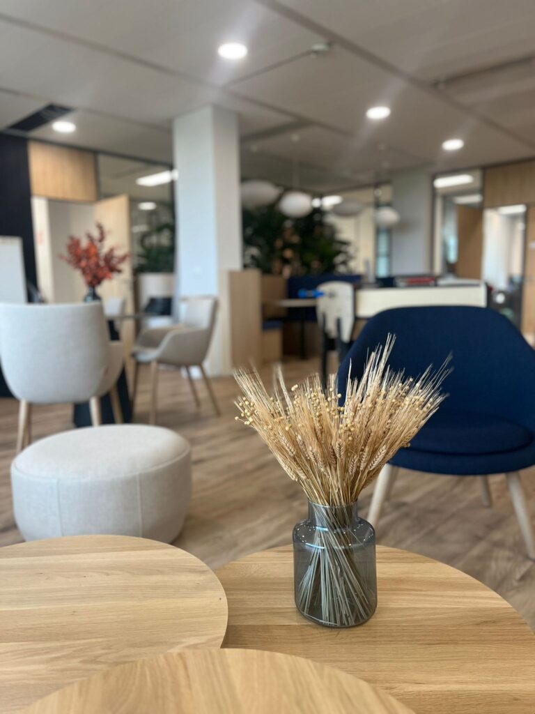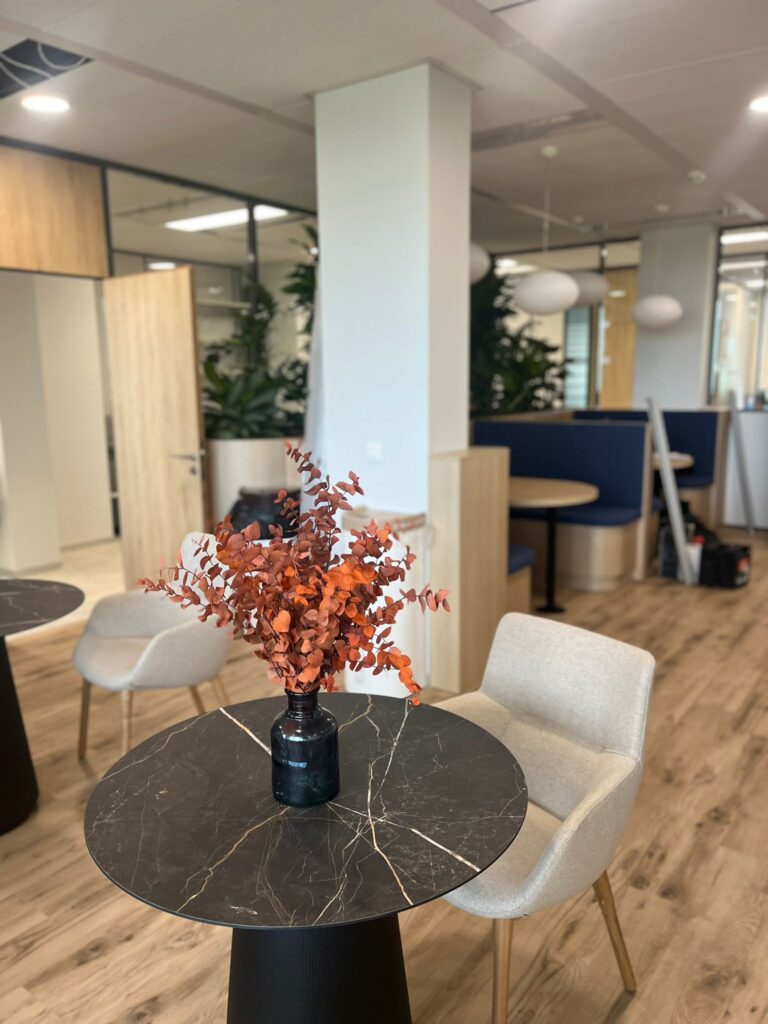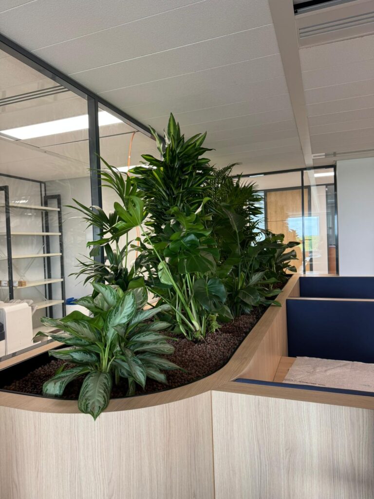 Chez Fidal Avocats, on a glissé un peu de chlorophylle entre deux dossiers. Une jardinière sur-mesure accueille des plantes vertes sourcées localement, complétées par des vases déco pour rythmer l’espace. Résultat : des bureaux qui plaide pour le bien-être.