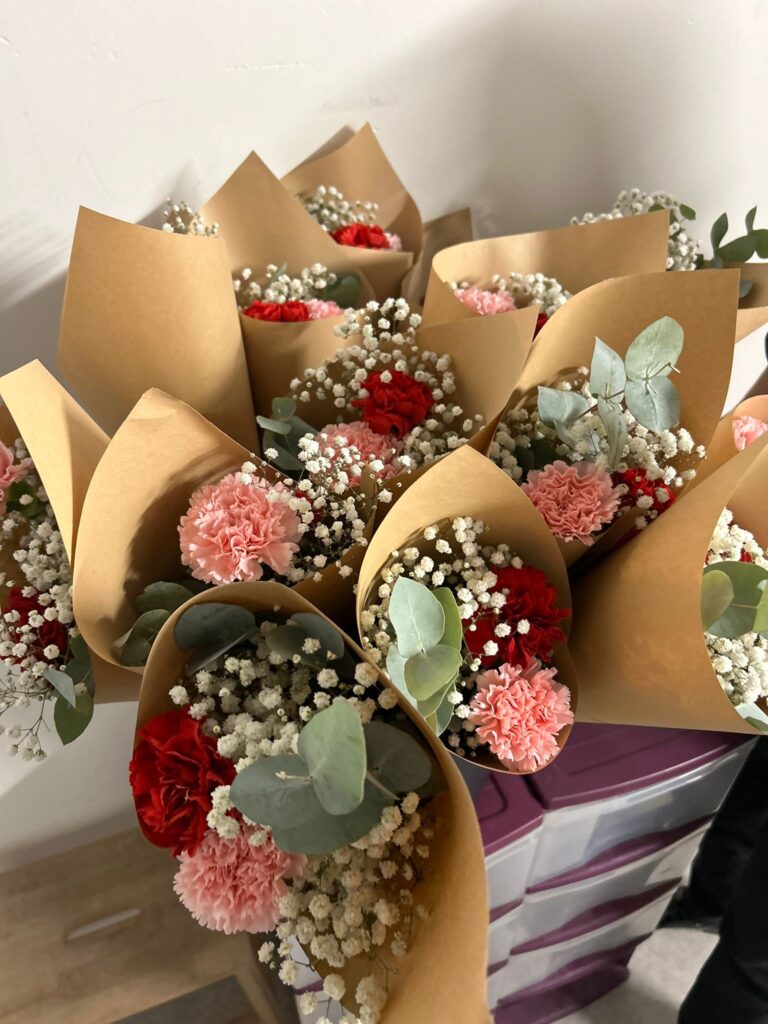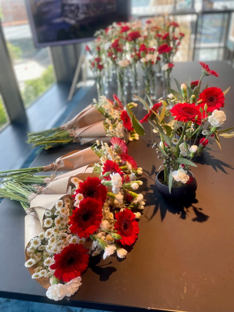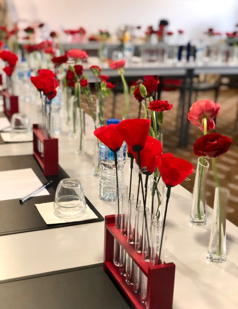 Cadeaux clients personnalisés et aménagement floral de leurs podiums en boutique