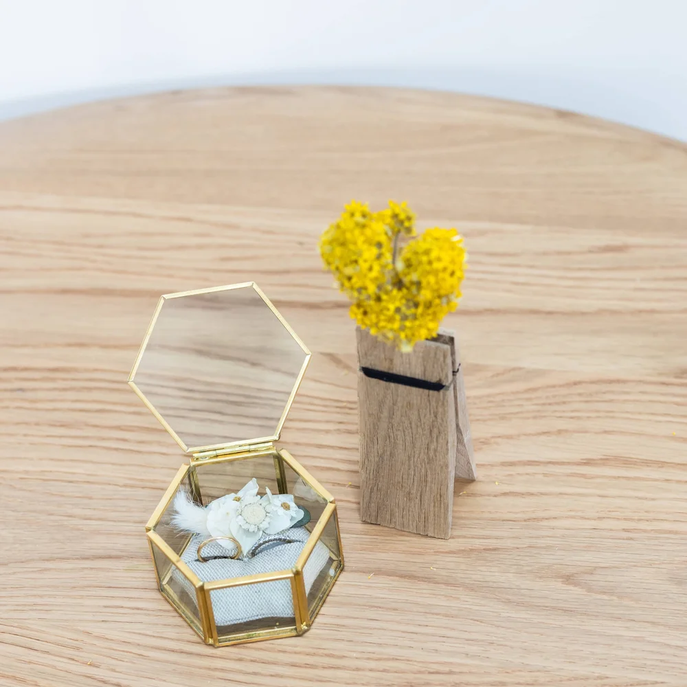 La boîte à alliances était en parfait accord avec mon peigne et mes chaussures, et nous étions ravis de l’avoir pour notre cérémonie laïque ! Une super boutique et un joli travail très soigné 🙂