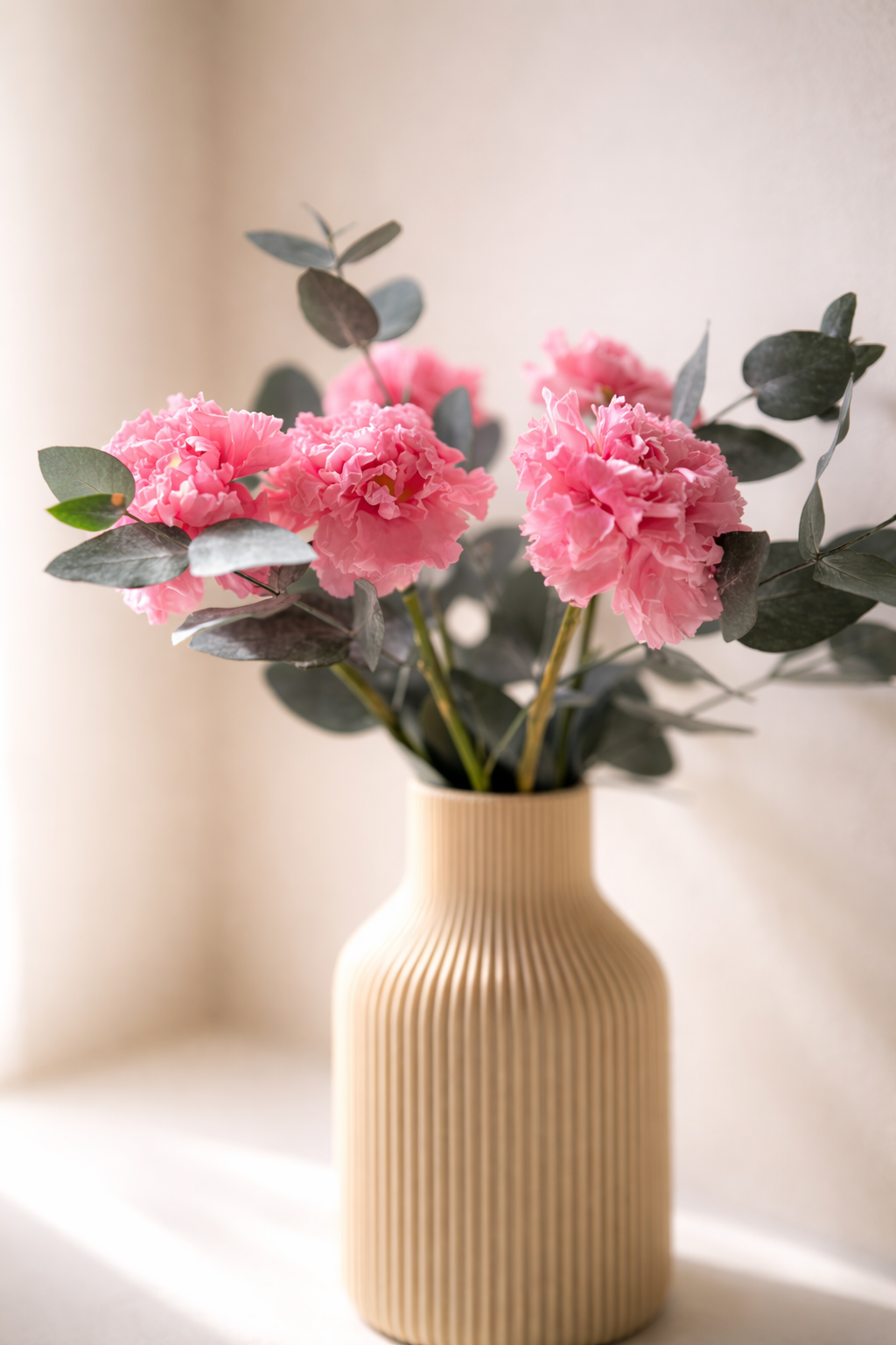Un bouquet mêlant l’élégance des œillets et la légèreté de l’eucalyptus stabilisé, créant une composition intemporelle et durable, sans entretien. Le végétal stabilisé conserve sa beauté sans besoin d’eau ni de lumière.