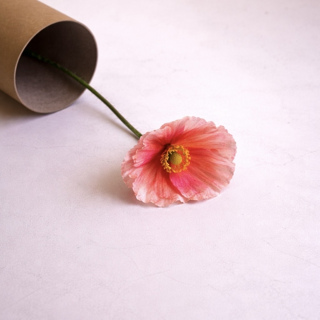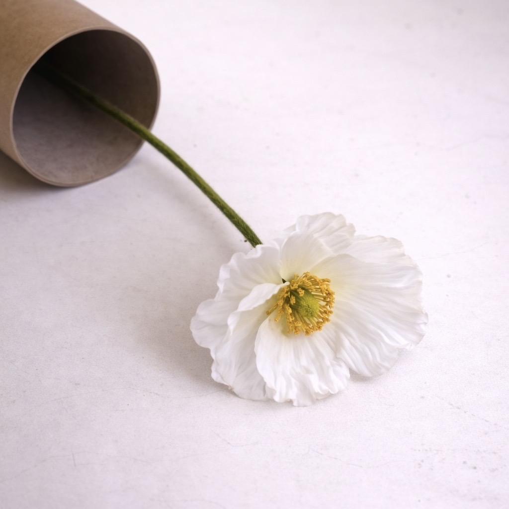 Ici, nous vous proposons un pavot, décliné en trois teintes au choix, choisi pour la finesse de sa tige, la légèreté de ses pétales et son allure à la fois poétique et intemporelle.